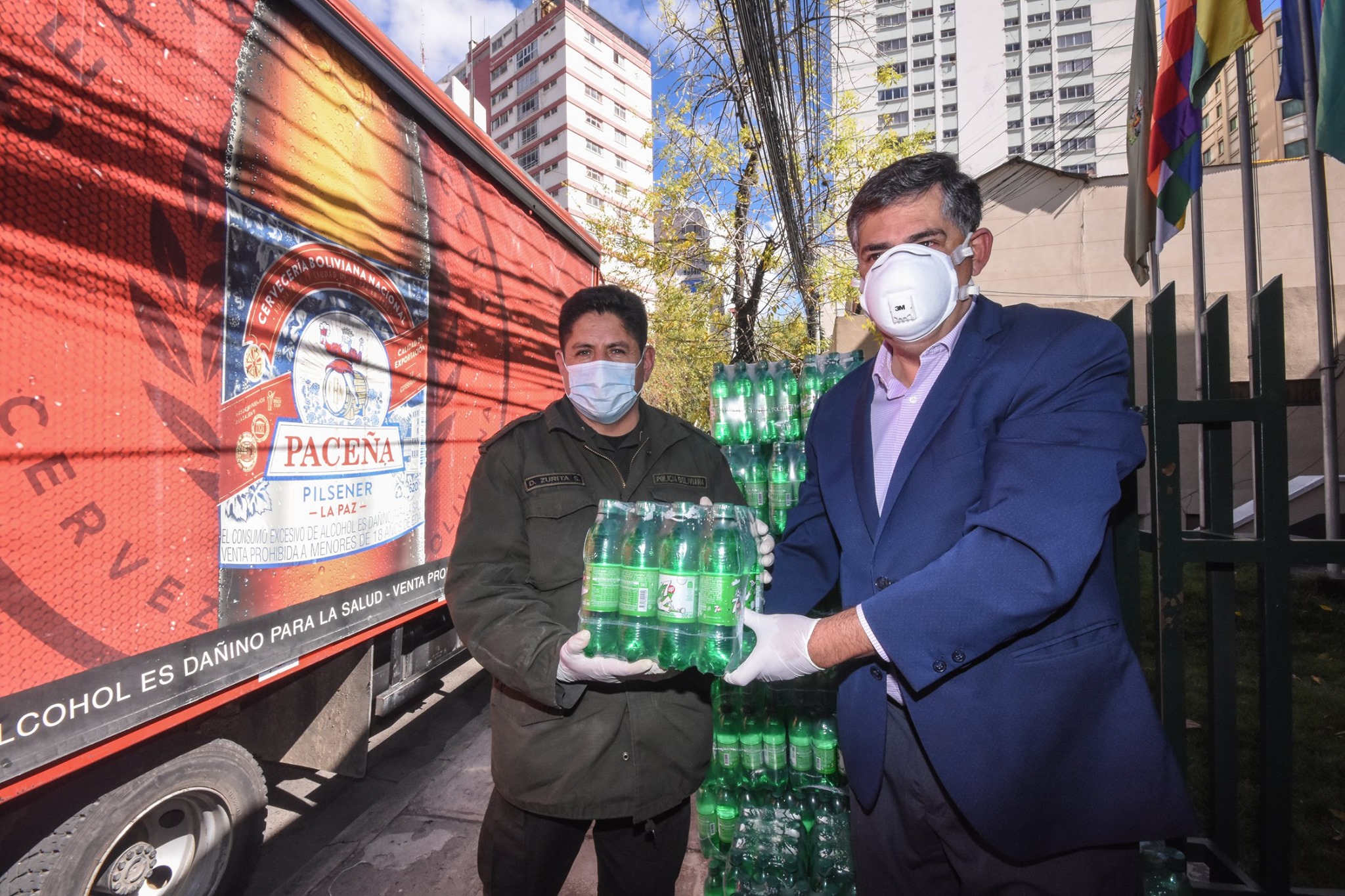 línea, la empresa entregó 71.510 litros de gaseosas y Maltín a la Policía Nacional y el Ejército boliviano, llegando a 145 instituciones y 52 centros de acogida a nivel nacional.